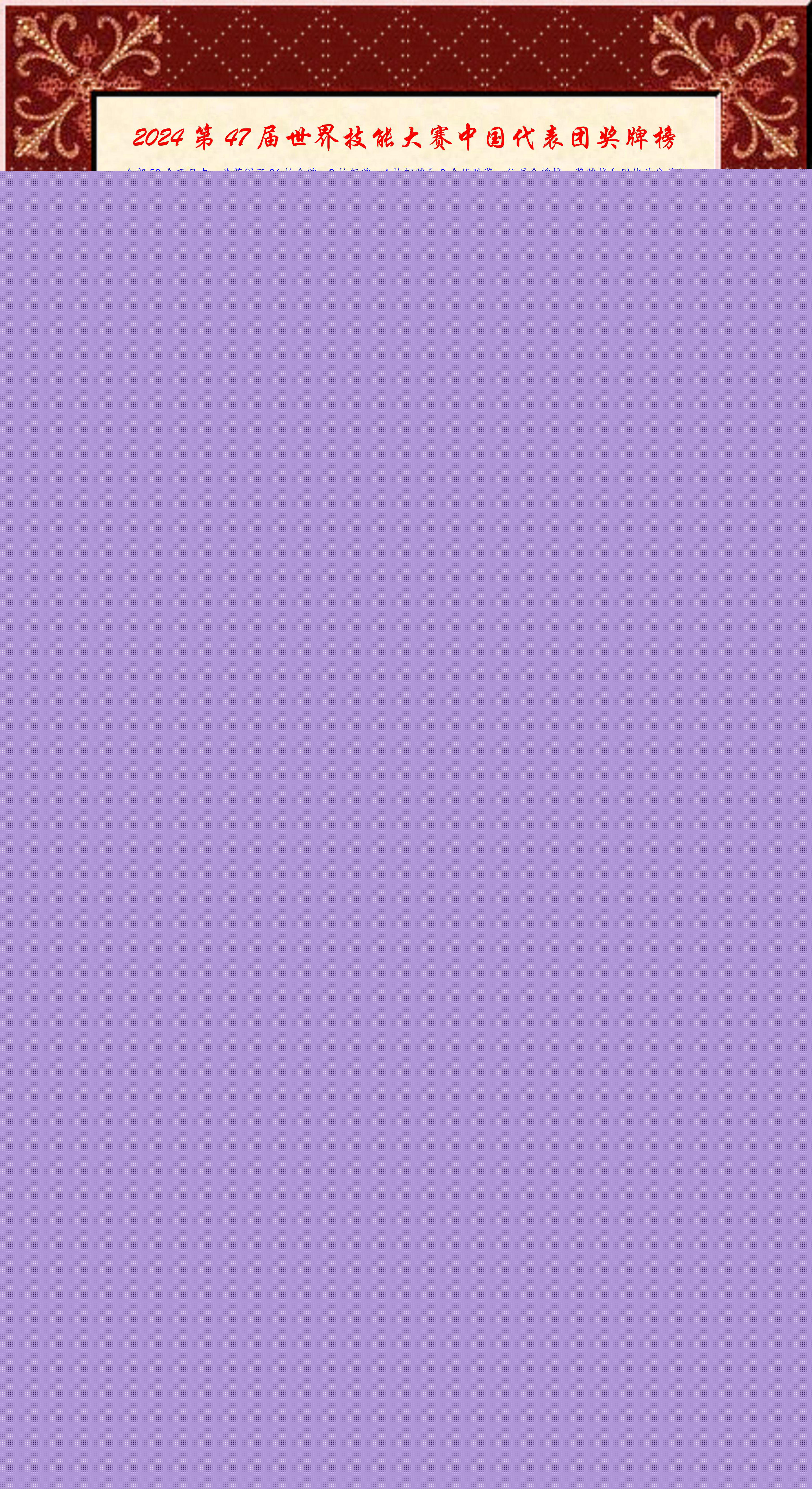 2024第47屆世界技能大賽中國(guó)代表團(tuán)獎(jiǎng)牌榜