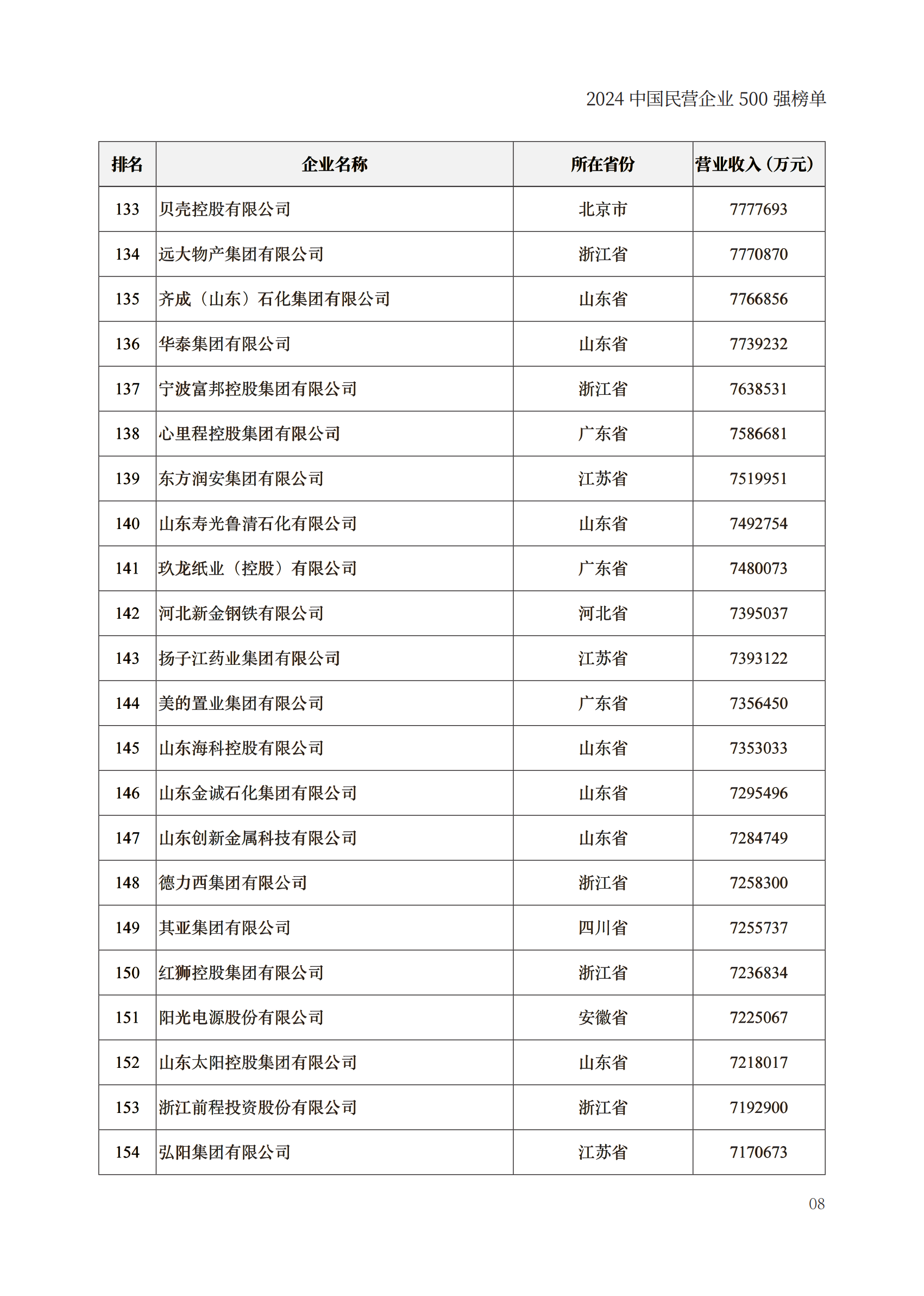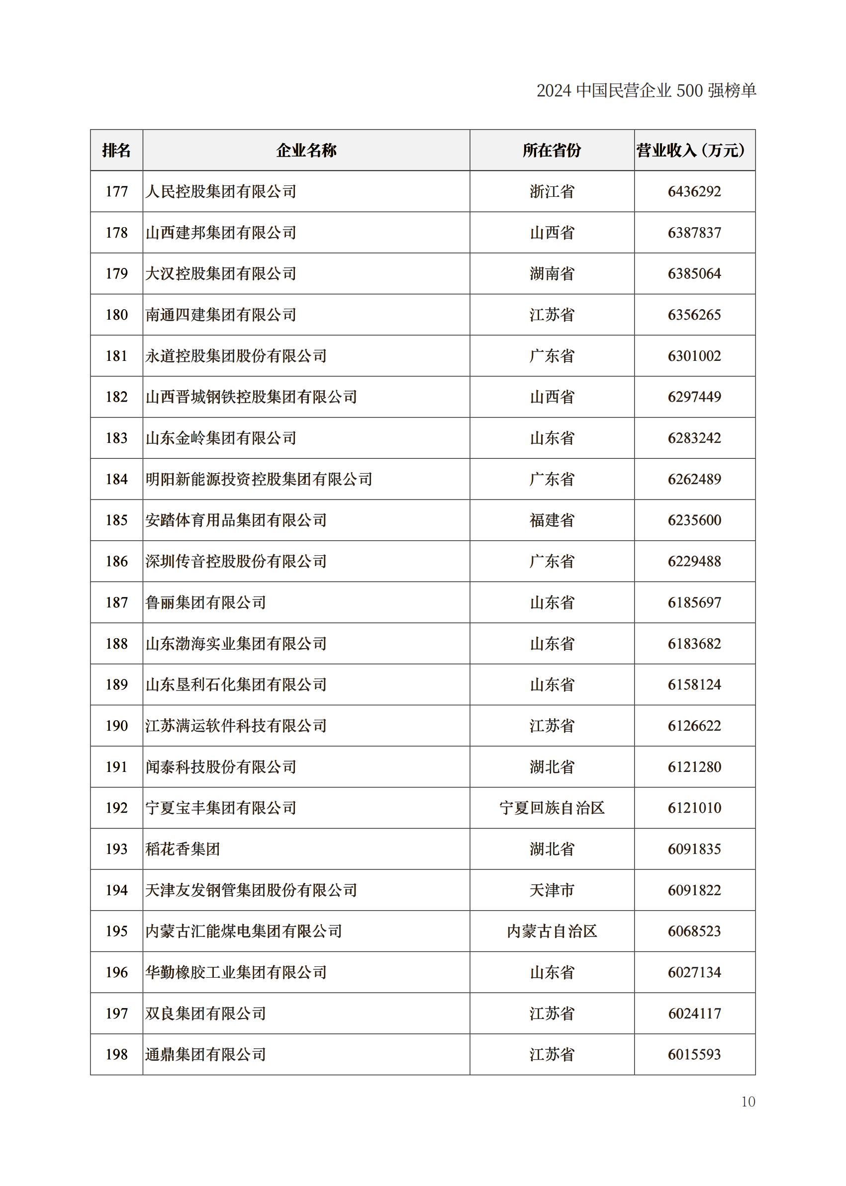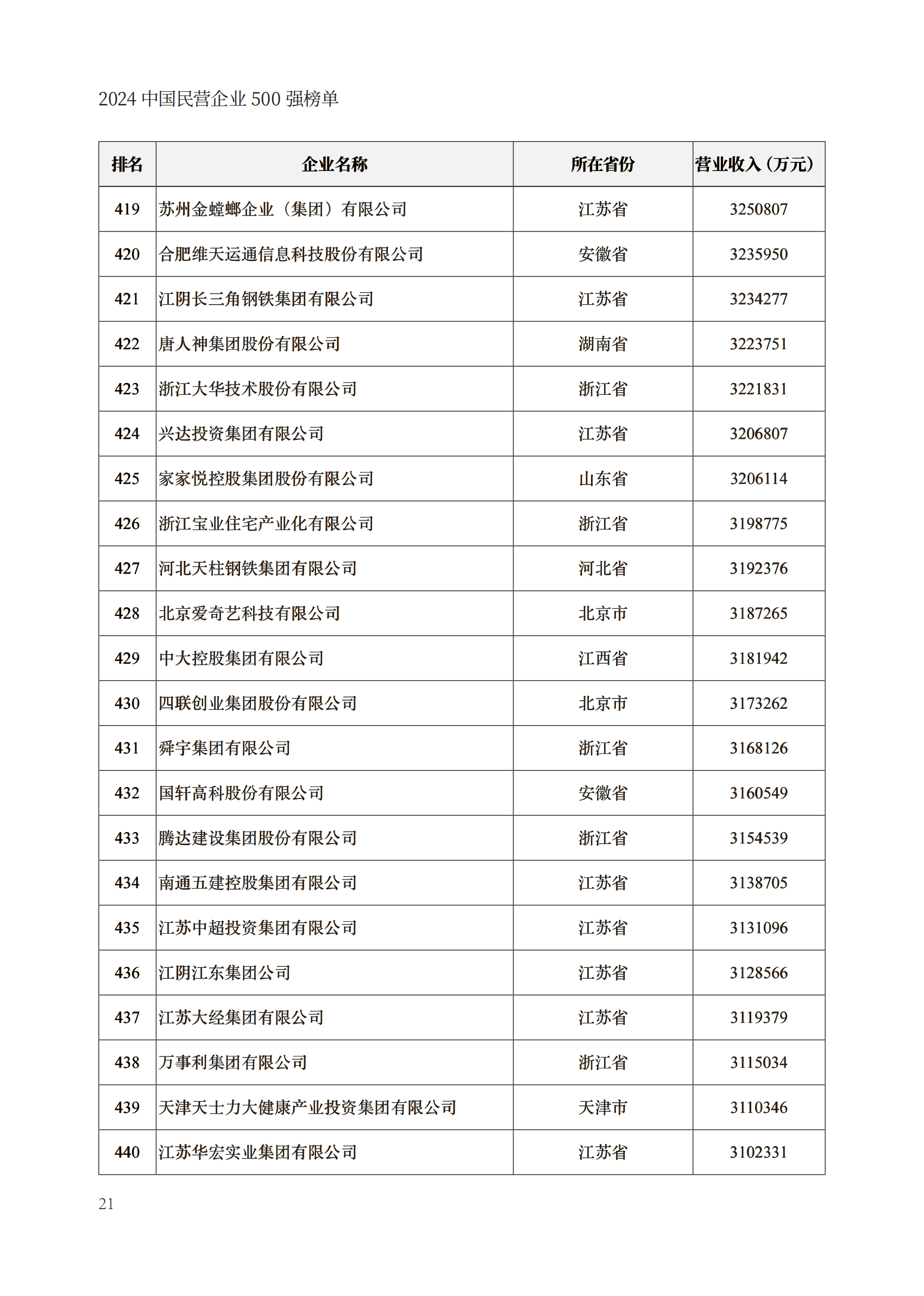【行業動態】2024中國民營企業500強 制造業民營企業500強 服務業民營企業100強