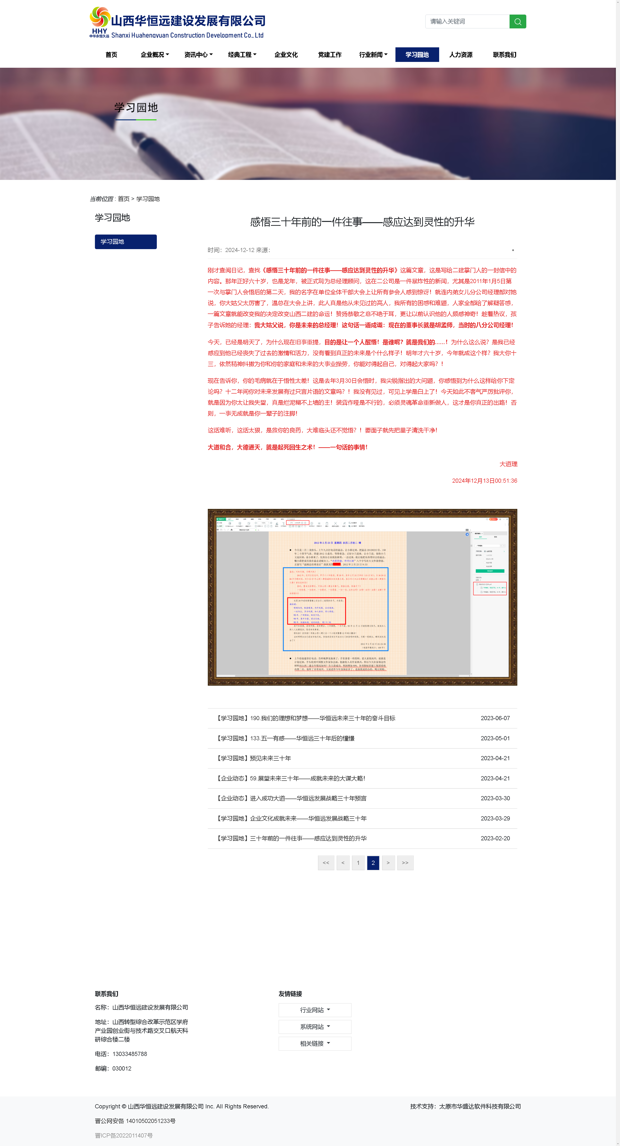 剛才查閱日記,查找《感悟三十年前的一件往事——感應達到靈性的升華》這篇文章,這是寫給二建掌門人的一封信中的內容。那年正好六十歲,也是龍年,被正式聘為總經理顧問,這在二公司是一件暴炸性的新聞,尤其是2011年1月5日第一次與掌門人會悟后的第二天,我的名字在單位全體干部大會上讓所有參會人感到驚訝!就連內弟女兒分公司經理都對她說,你大姑父太厲害了,溫總在大會上講,此人真是他從未見過的高人,我所有的困惑和難題,人家全都給了解疑答惑,一篇文章就能改變我的決定改變山西二建的命運!贊揚恭敬之意不絕于耳,更讓以前認識他的人頗感神奇!趁著熱議,孩子告訴她的經理:我大姑父說,你是未來的總經理!這句話一語成讖:現在的董事長就是胡孟師,當時的八分公司經理!