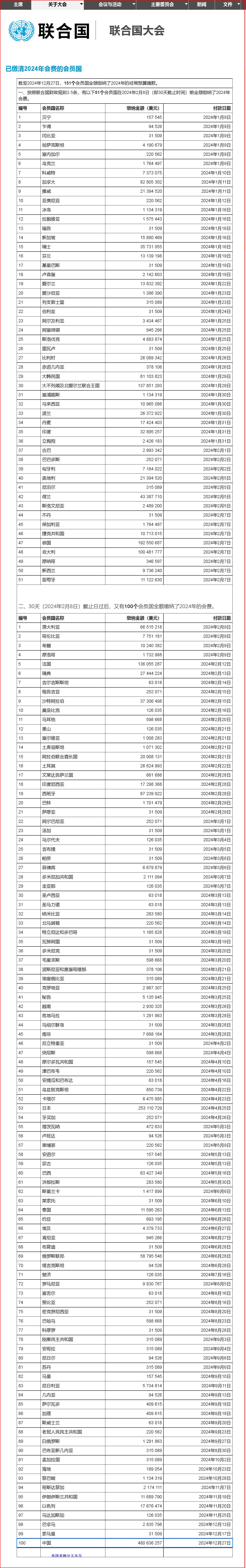 截至2024年12月27日,151個會員國全額繳納了2024年的經常預算攤款。