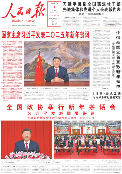 2021年元旦《人民日報》發表《國家主席習近平發表二〇二一年新年賀詞》。