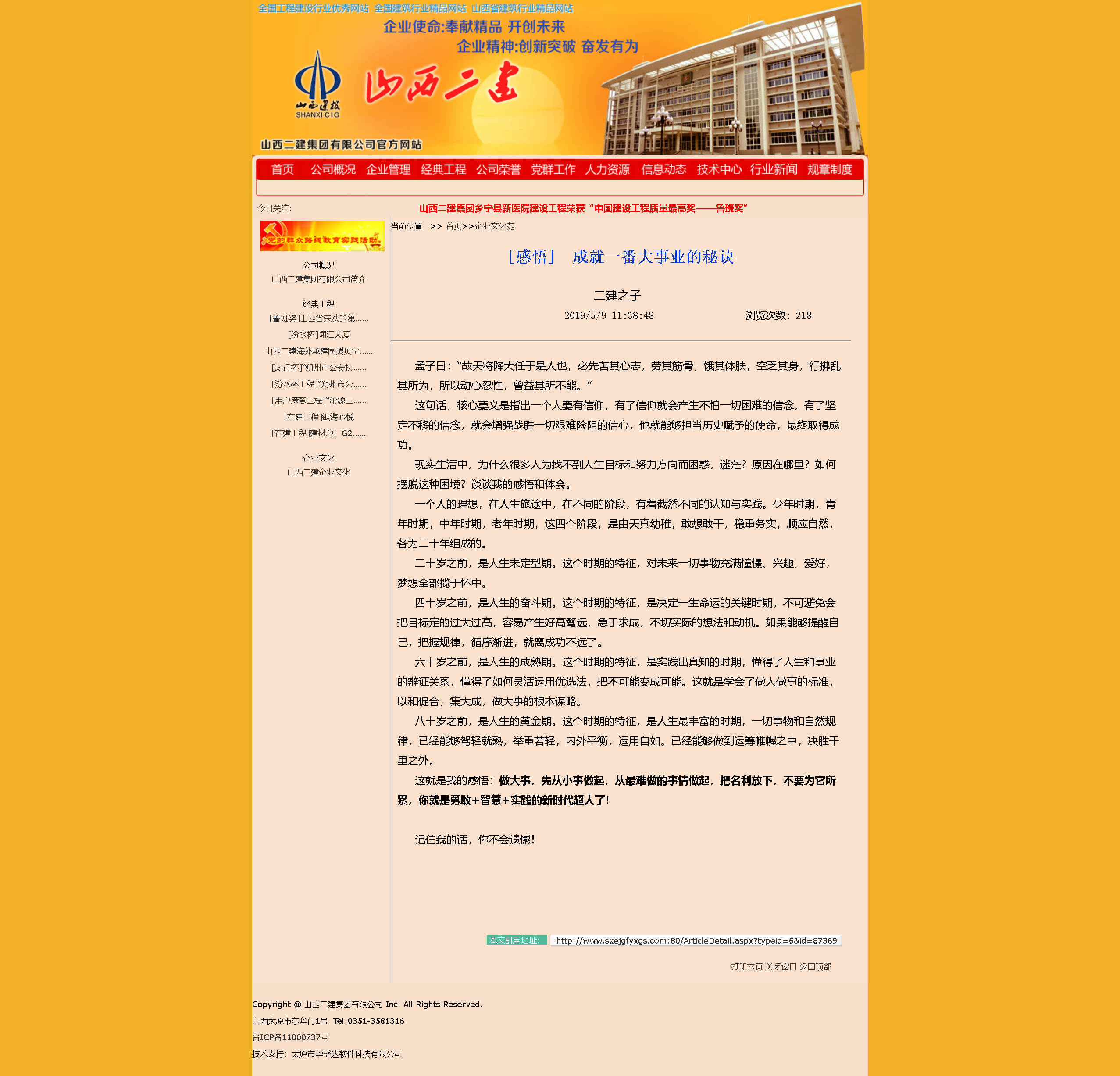 六十多年的社會實踐,豐富的閱歷,逐步形成了只屬于自己的一套做人做事,為人處世的哲學思想和觀念,可以說是經驗總結,給山西二建的青年們分享一下,或許能夠在你困惑與迷茫之中,一定能夠起到豁然開朗,明心明志的作用。