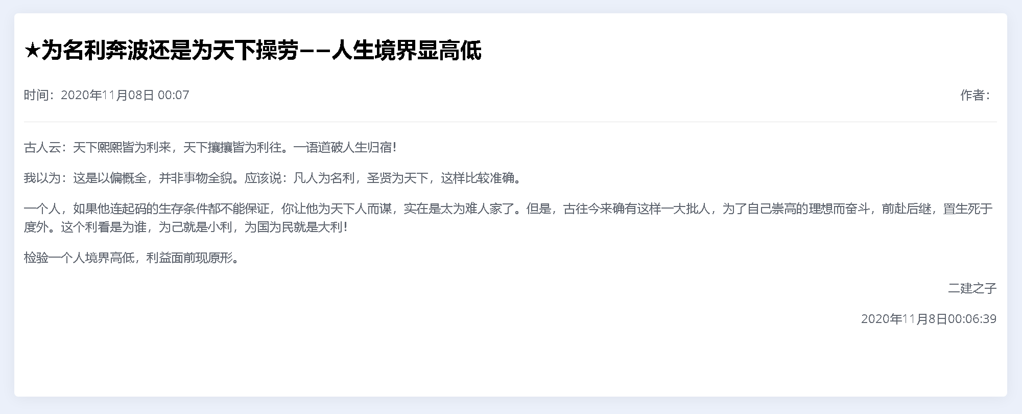 我以為:這是以偏概全,并非事物全貌。應該說:凡人為名利,圣賢為天下,這樣比較準確。