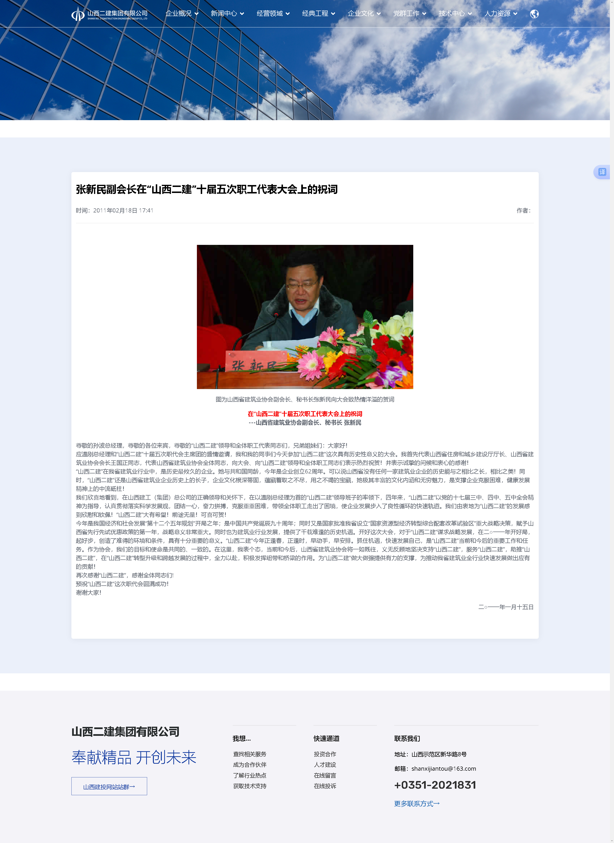 今天,再一次重溫十五年前我撰寫的這篇賀詞,回顧當時那一次決定山西二建前途命運的大會,就像昨天發生的事情一樣,感慨萬千,思緒萬千!