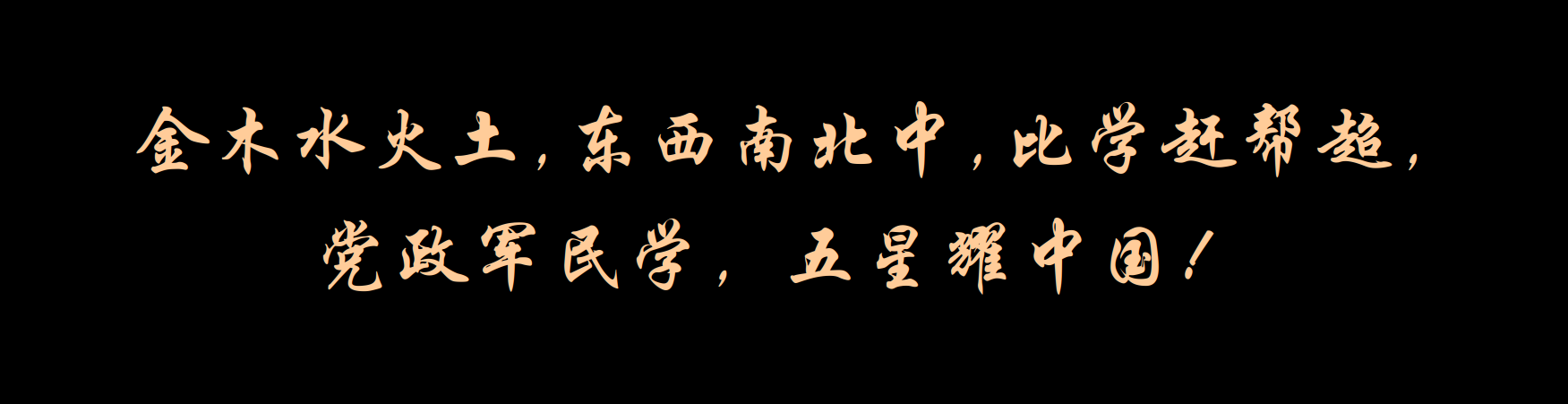 金木水火土,東西南北中,比學(xué)趕幫超,黨政軍民學(xué),五星耀中國(guó)!