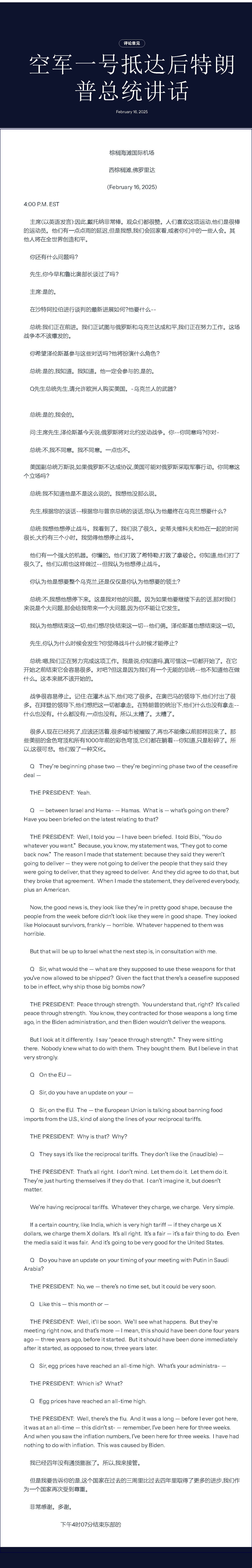總統(tǒng):嗯,我們正在努力完成這項工作。我是說,你知道嗎,真可惜這一切都開始了。在它開始之前結(jié)束它會容易很多。對吧?但這是因為我們有一個無能的總統(tǒng)--他不知道他在做什么。這本來就不該開始的。