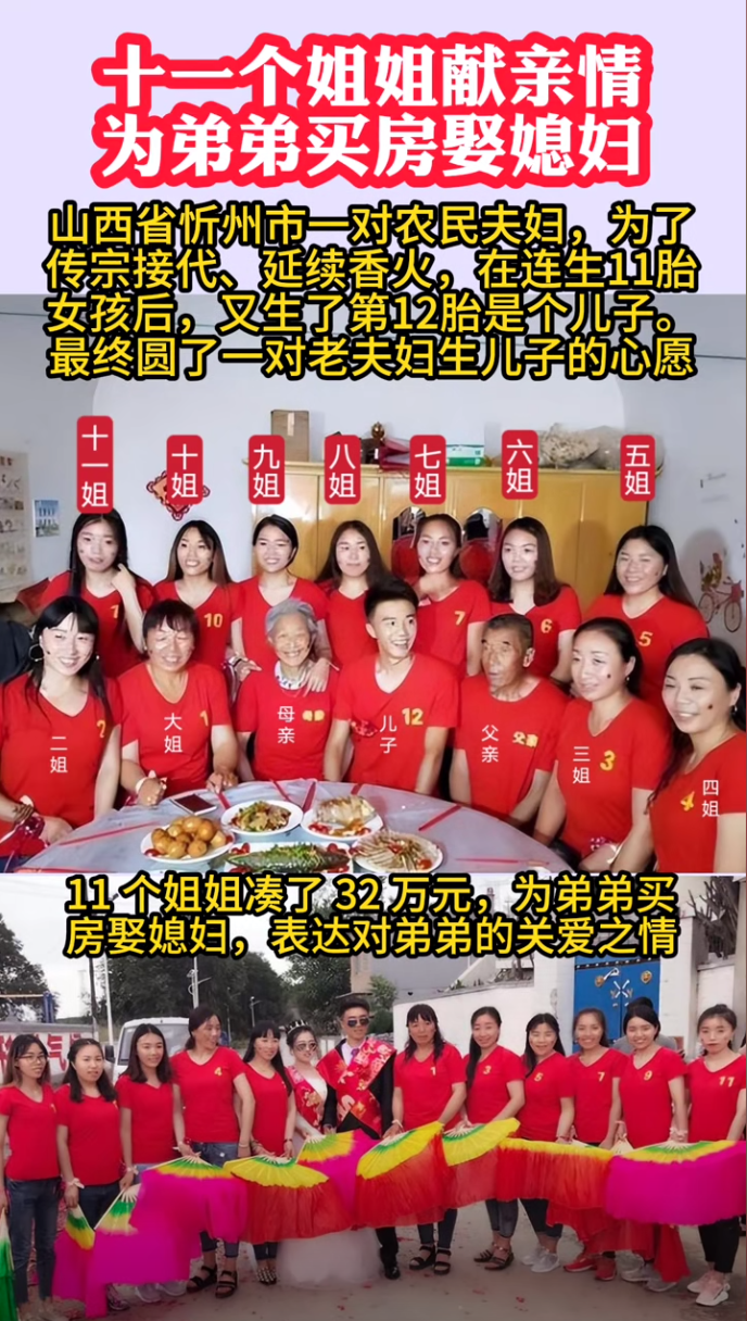 11個姐姐那可是看著弟弟高浩珍一點點長大的,打心眼里疼這個弟弟。這不,為了弟弟的終身大事,她們合計著一塊兒湊錢幫弟弟辦婚禮。這11個姐姐呀,湊了整整32萬,拿這筆錢給弟弟付了房子的首付,好讓弟弟順順利利地把婚禮給辦了。