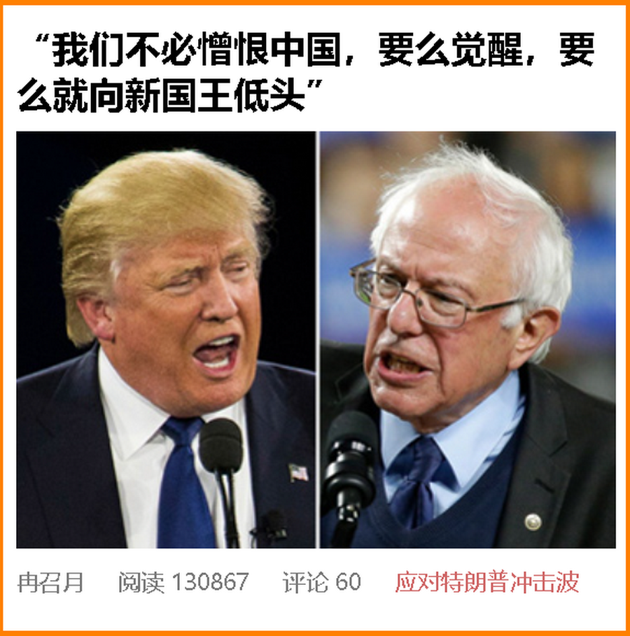伯尼·桑德斯二十年前的預(yù)見成為現(xiàn)實,不能不說美國還是有明白人的,而這個明白人從堅決反對中國到如今承認(rèn)中國再到自我超越理解中美關(guān)系應(yīng)該是相互成就的合作之道,他確實了不起!