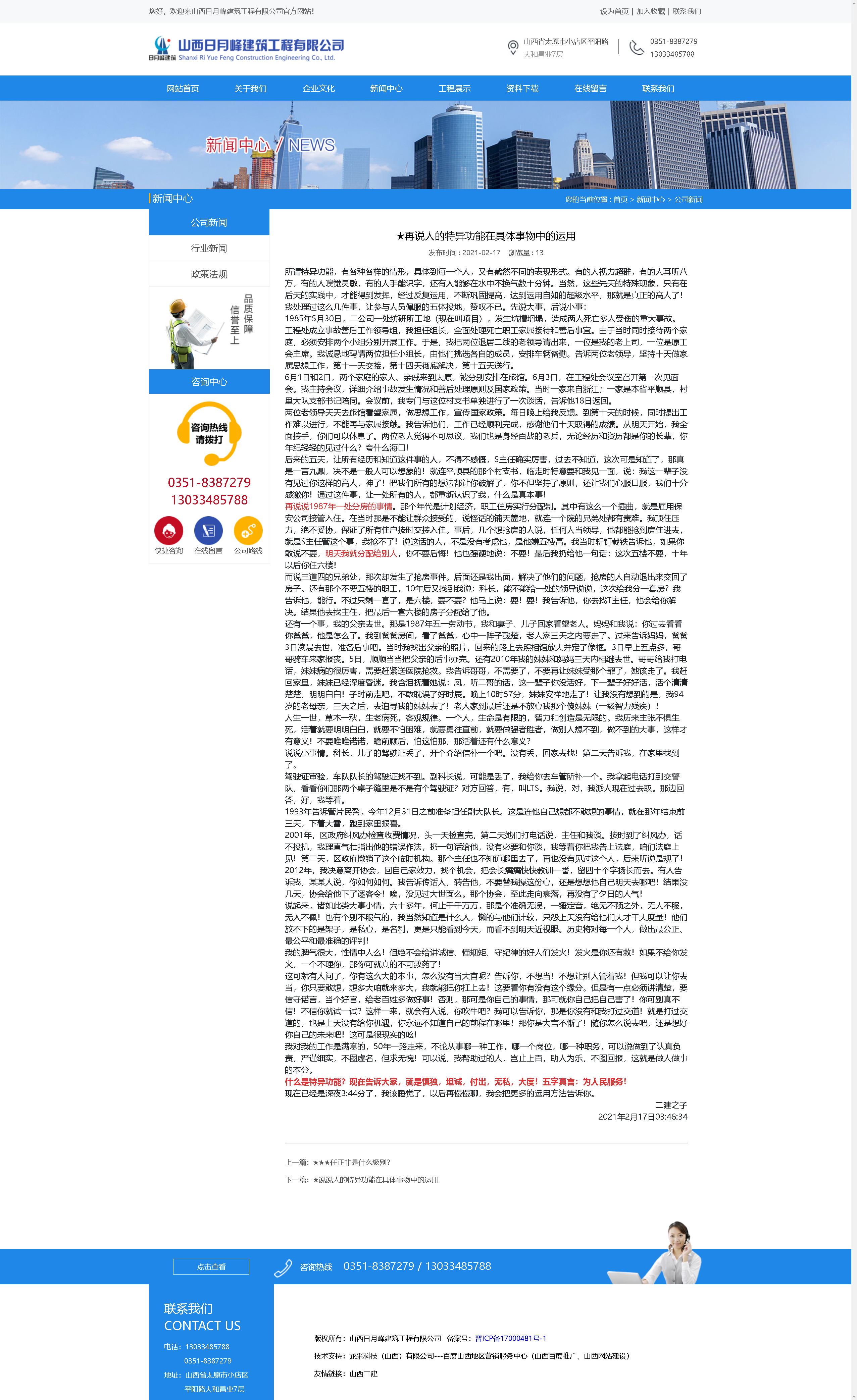 我為什么現(xiàn)在還在為我們的企業(yè)工作?就是因?yàn)槲抑郎轿鞫ǖ倪^去、現(xiàn)在和未來!我在繼續(xù)著上一任掌門人交給我的任務(wù),那是一份光榮的任務(wù),是一份企業(yè)歷史上從未有過的艱巨任務(wù)。那就是實(shí)現(xiàn)山西二建的偉大理想——成就一個(gè)英雄的、光榮的、強(qiáng)大的百年山西二建!