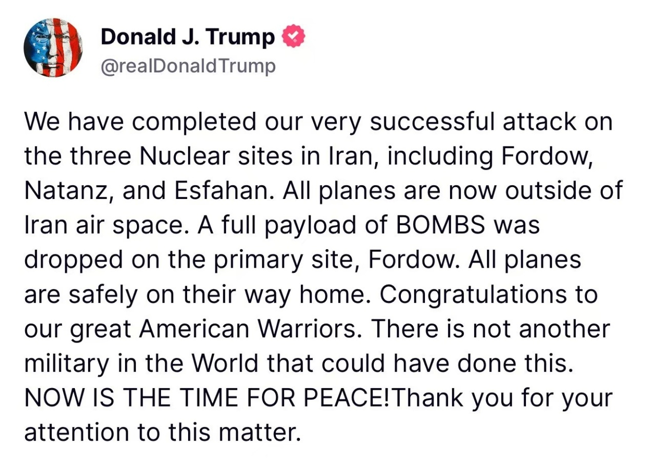 特朗普在社交平臺宣布對伊朗核設施的襲擊,結尾還在強調“現在是和平的時候了”......到目前為止,伊以沖突雖然規模還不能與中東前幾次戰爭相比,但作為伊拉克戰后中東地區爆發的第一場區域大國之間的對戰,存在不少突破既有國際規則之處。并且沖突各方都缺乏對全局的把控能力,很可能將會把這場沖突帶向不可知的方向。