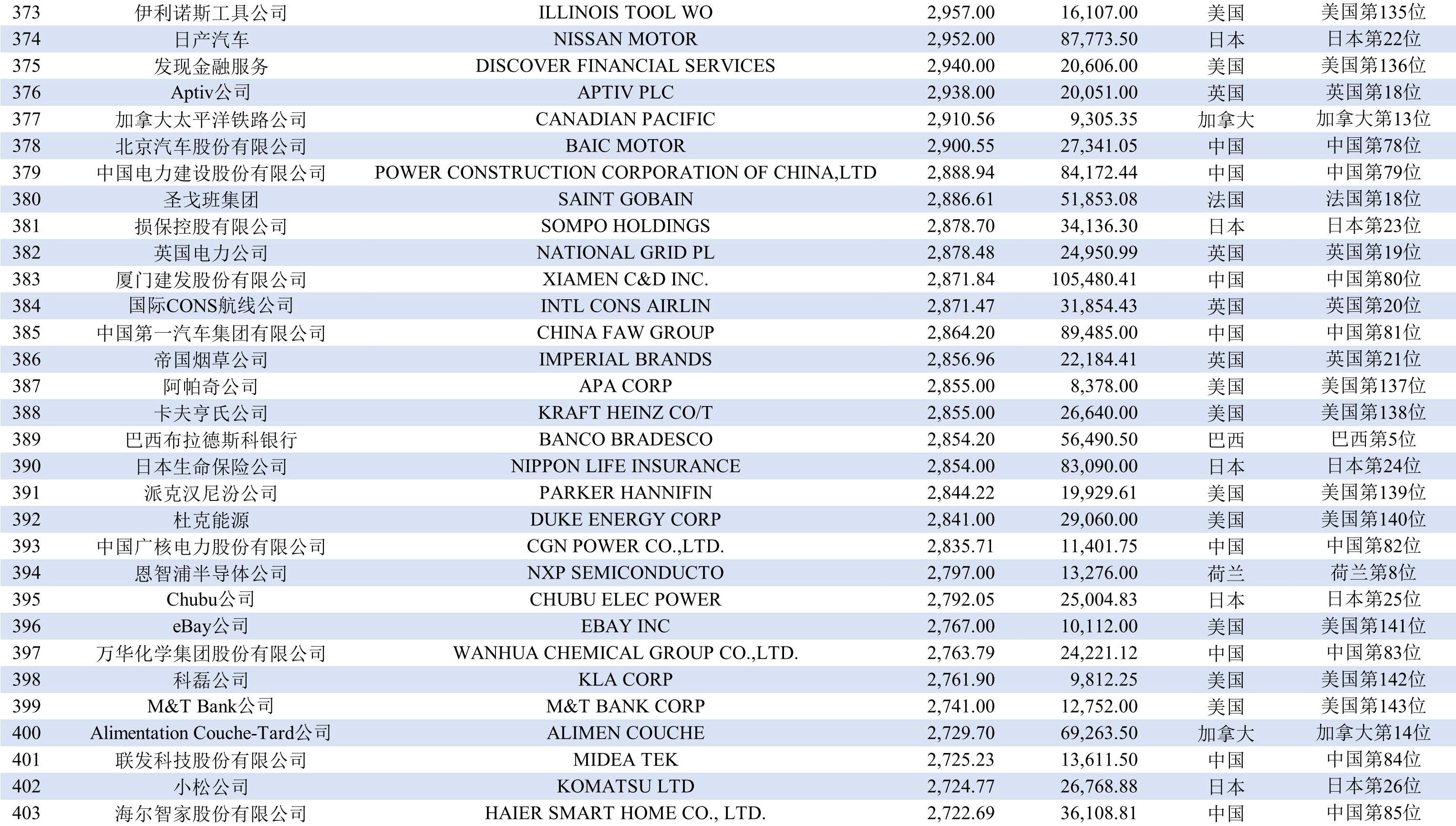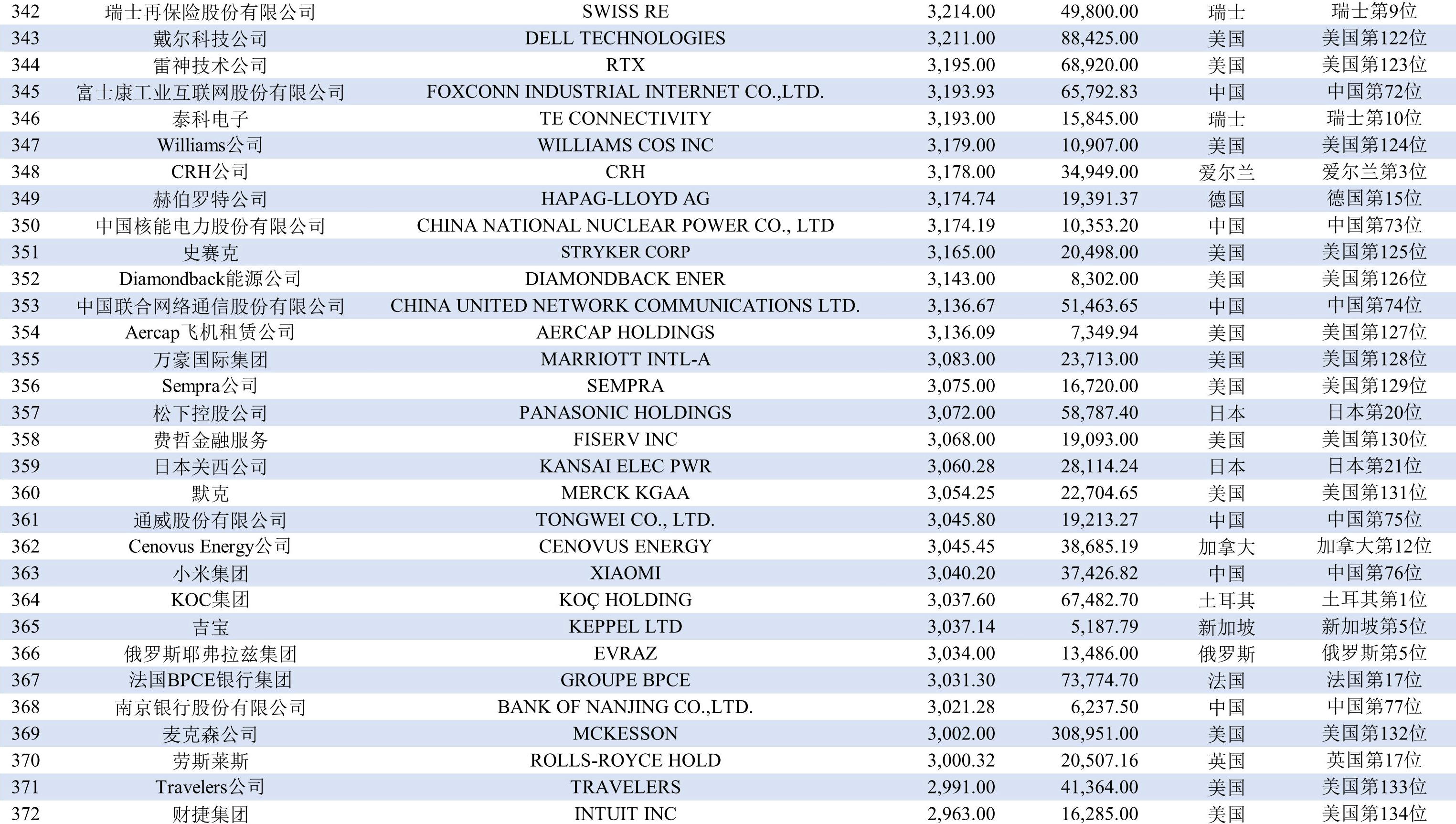 排在第九位的國家有三個,分別是澳大利亞、荷蘭和印度,均有8家上榜企業;排在第十二位至第二十一位的國家分別是巴西、俄羅斯、韓國、西班牙、新加坡、意大利、愛爾蘭、墨西哥、阿聯酋、丹麥,均各有2-6家企業上榜。