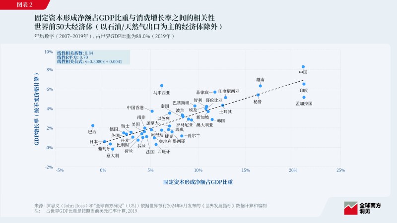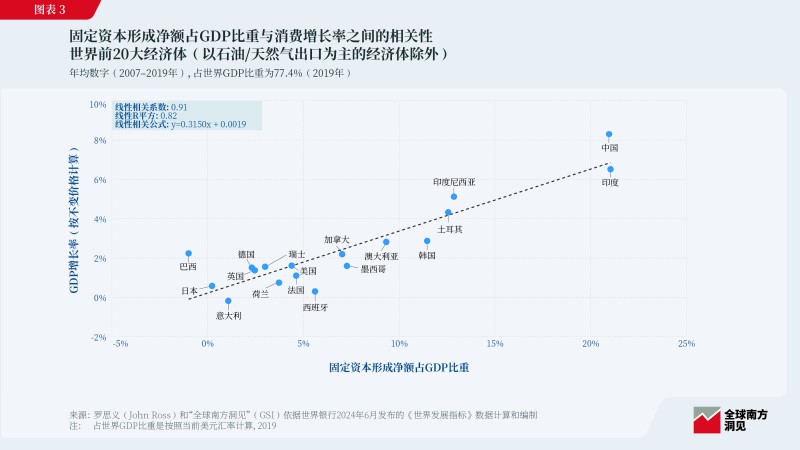固定資本形成凈額占GDP比重與消費增長高度相關,且經濟規模越大相關性越強