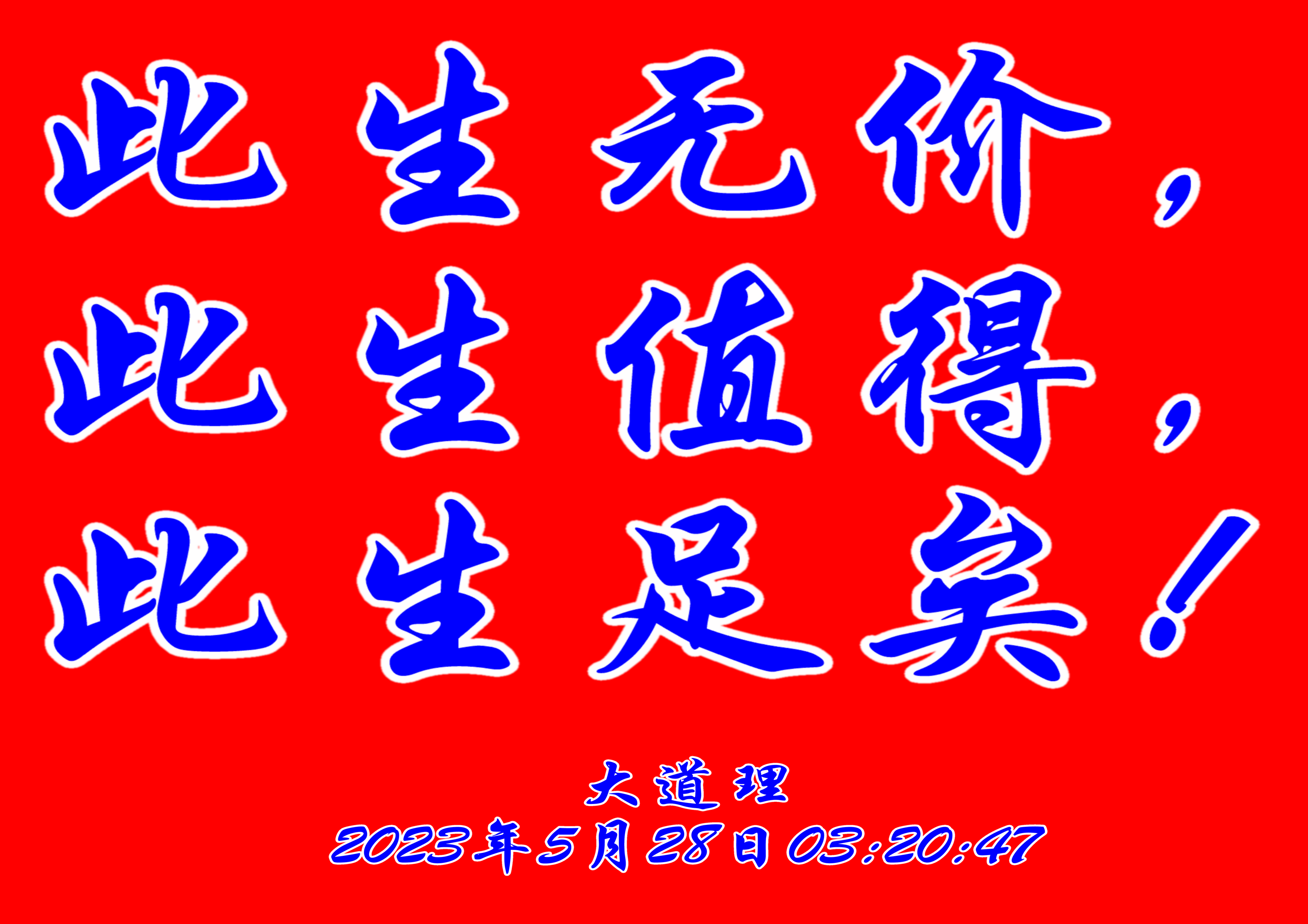 做人做事,必須認真,不做便罷,做就做好,做就第一,做就極致,做就做到無人超越,這就是我一輩子的信條,一輩子堅持不懈持之以恒的信念!可以說,七十年始終如一,不曾懈怠,年復一年,日復一日,修成正果,此生甚慰!我做到了人生無憾上天護佑的境界,做到了為人一世天地良心的高端,做到了道德和合一體的自然,感慨、欣慰、滿足!