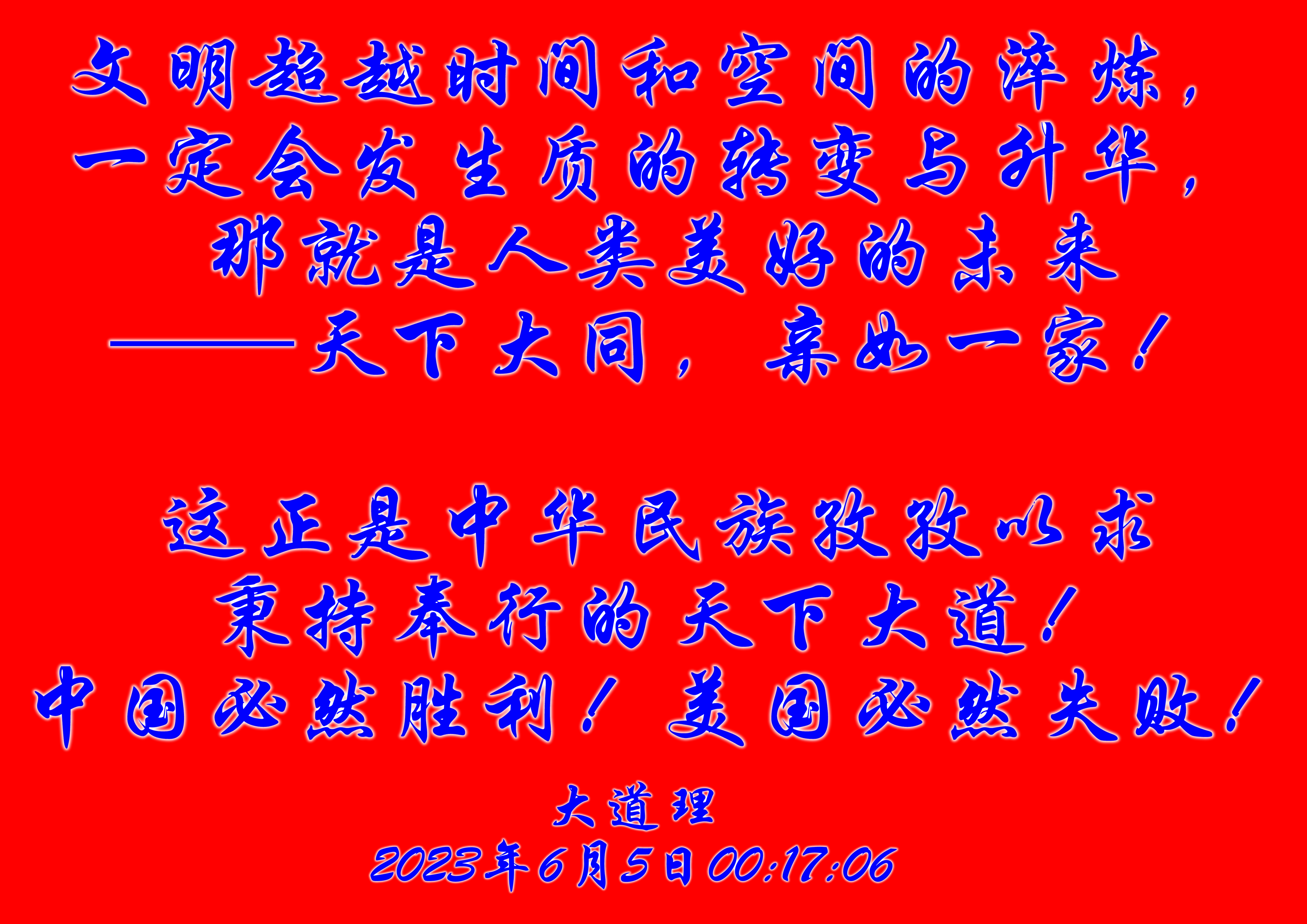 這正是:世界格局發生根本性變化——東西方文明博弈的天平傾向東方!中華民族孜孜以求秉持奉行的天下大道!中國必然勝利!美國必然失敗!
