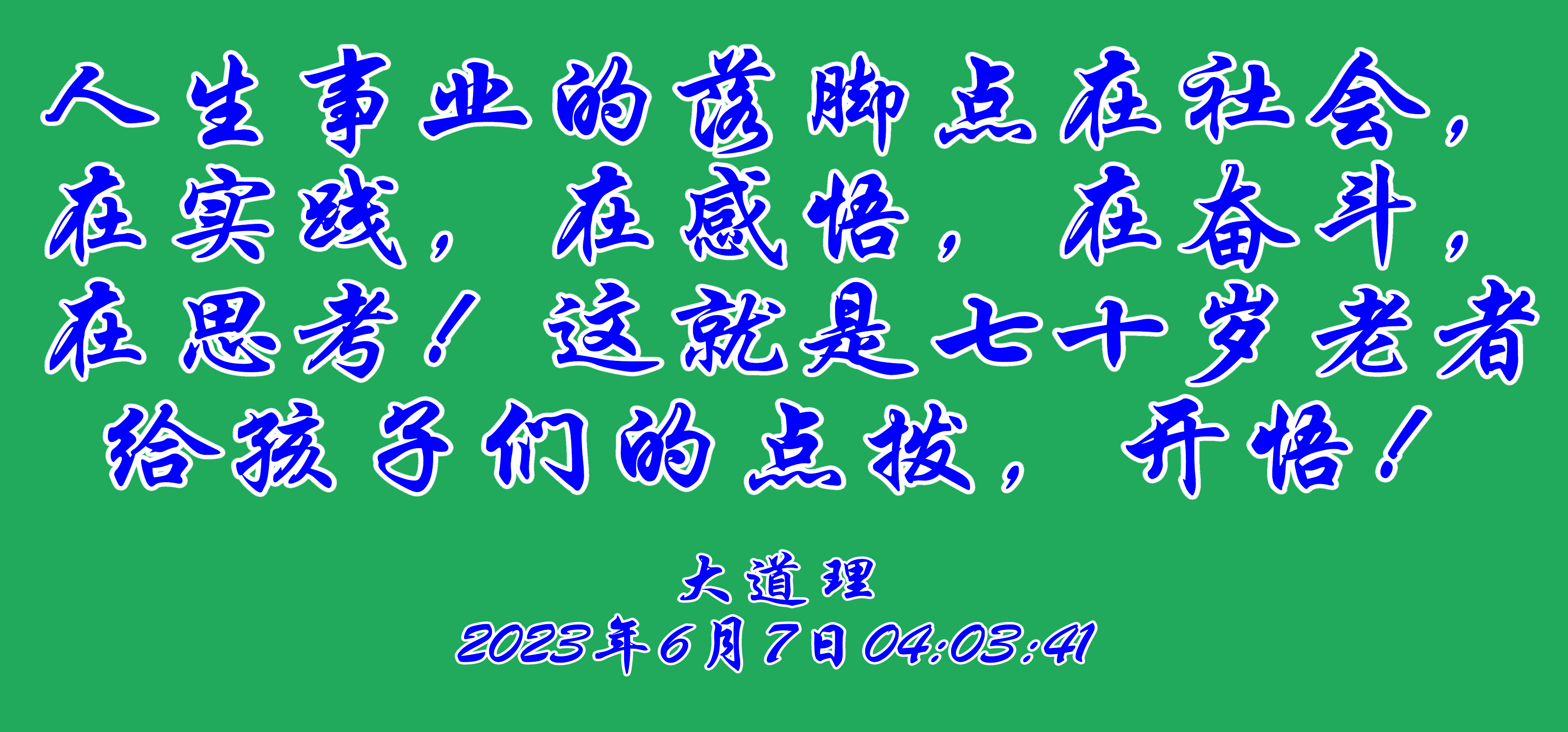 人生事業的落腳點在社會,在實踐,在感悟,在奮斗,在思考!這就是七十歲老者給孩子們的點撥,開悟!