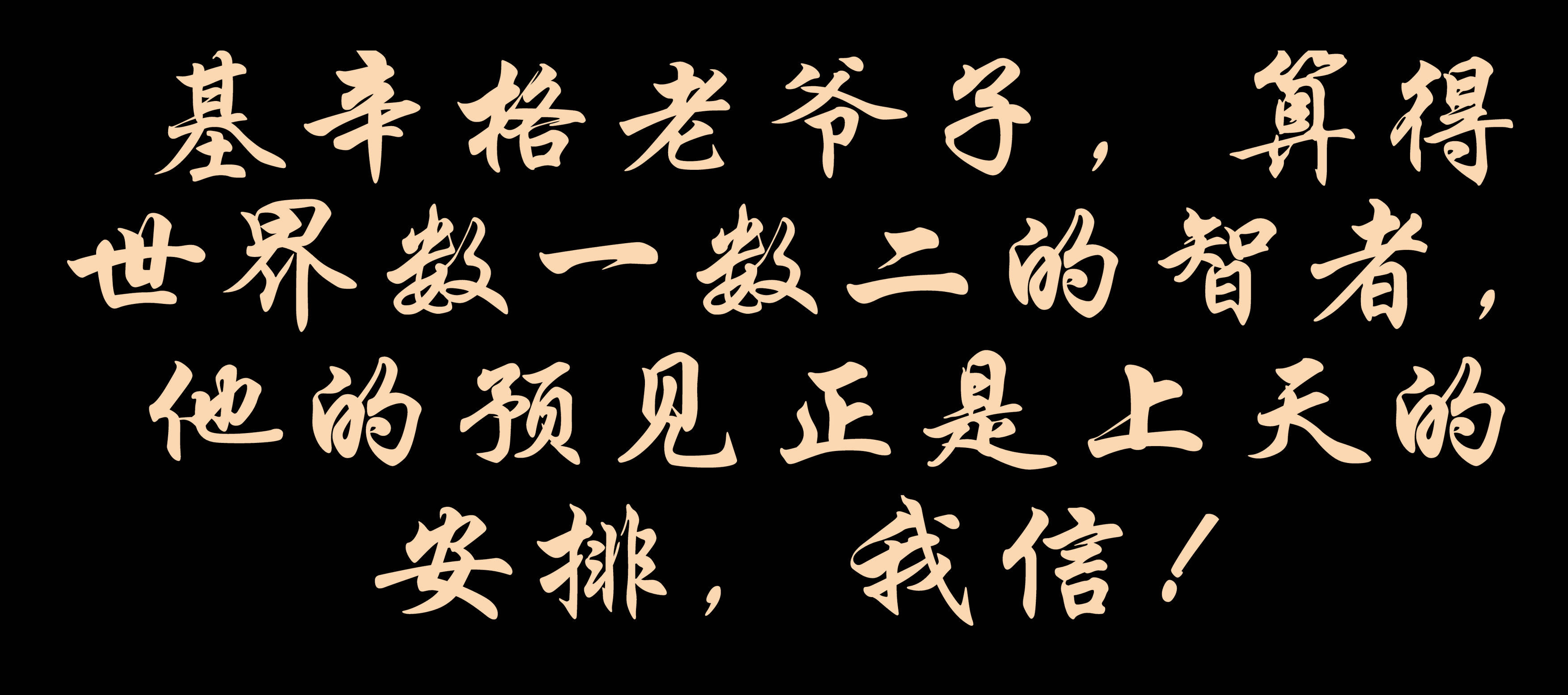 基辛格老爺子,算得世界數一數二的智者,他的預見正是上天的安排,我信!