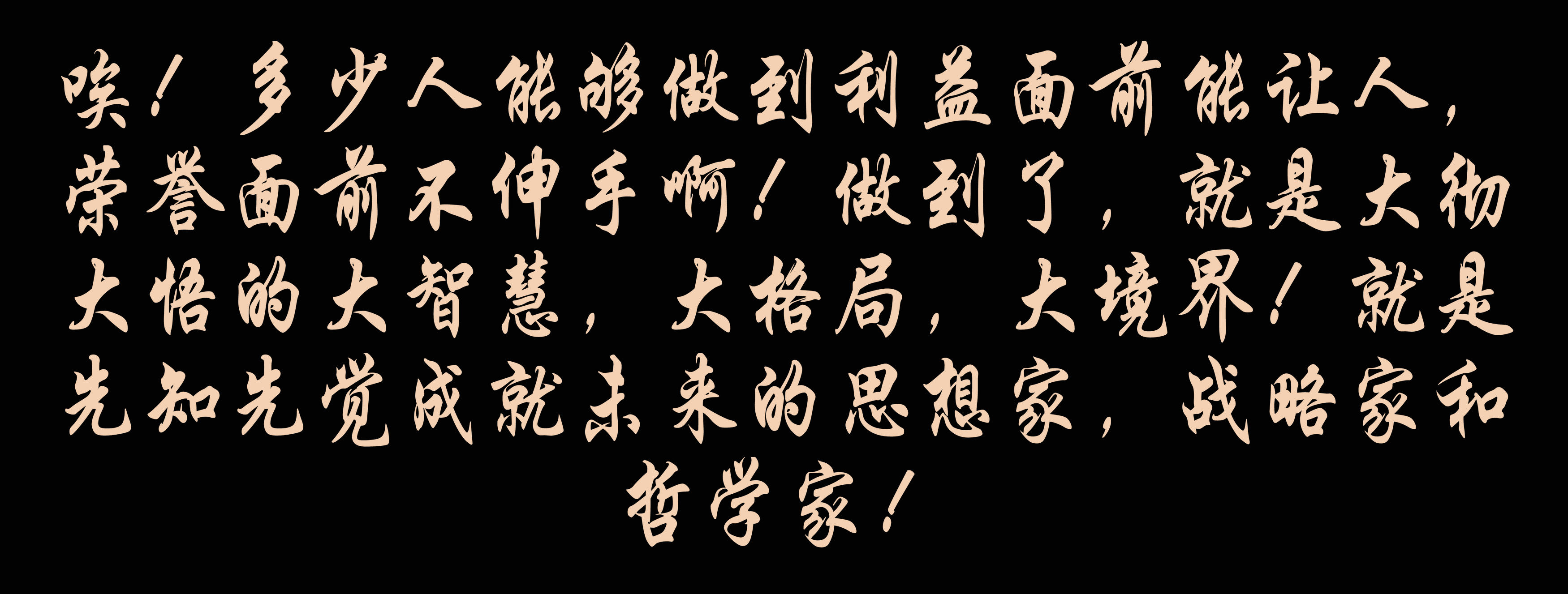 唉!多少人能夠做到利益面前能讓人,榮譽(yù)面前不伸手啊!做到了,就是大徹大悟的大智慧,大格局,大境界!就是先知先覺(jué)成就未來(lái)的思想家,戰(zhàn)略家和哲學(xué)家!