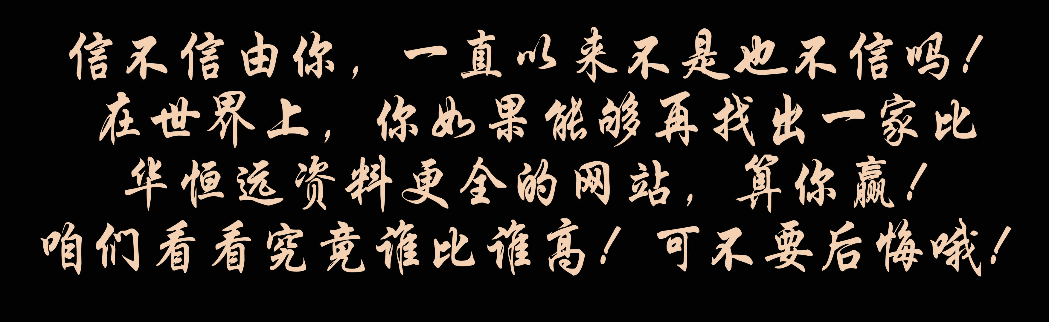 信不信由你,一直以來不是也不信嗎!在世界上,你如果能夠再找出一家比華恒遠資料更全的網站,算你贏!