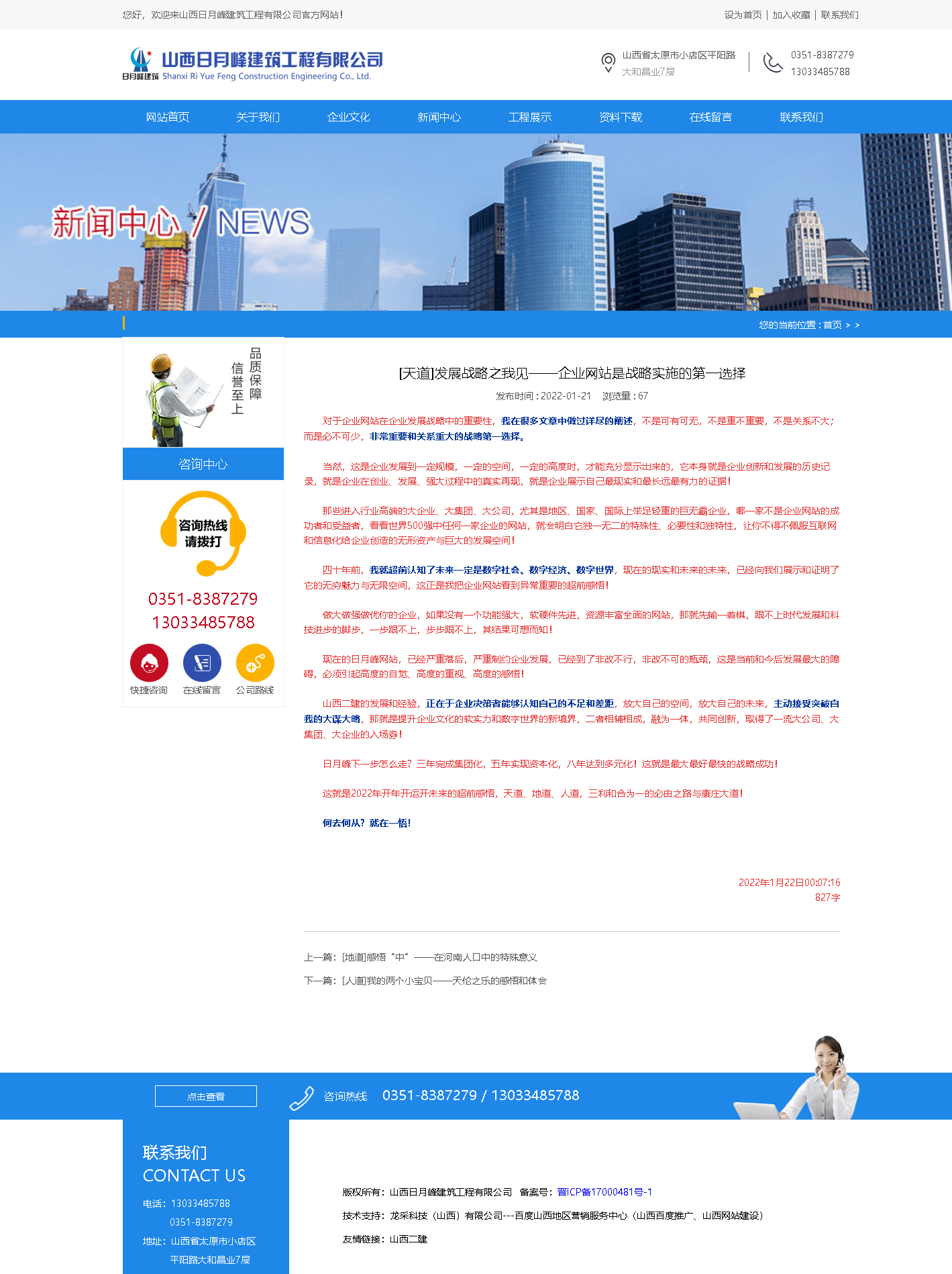 現在可以告訴大家的是:沒有自己公司的網站,就等于沒有自己生存的條件!山西二建的成功就是因為有了網站和內刊雙翼起飛的翅膀,才能夠取得成功的!