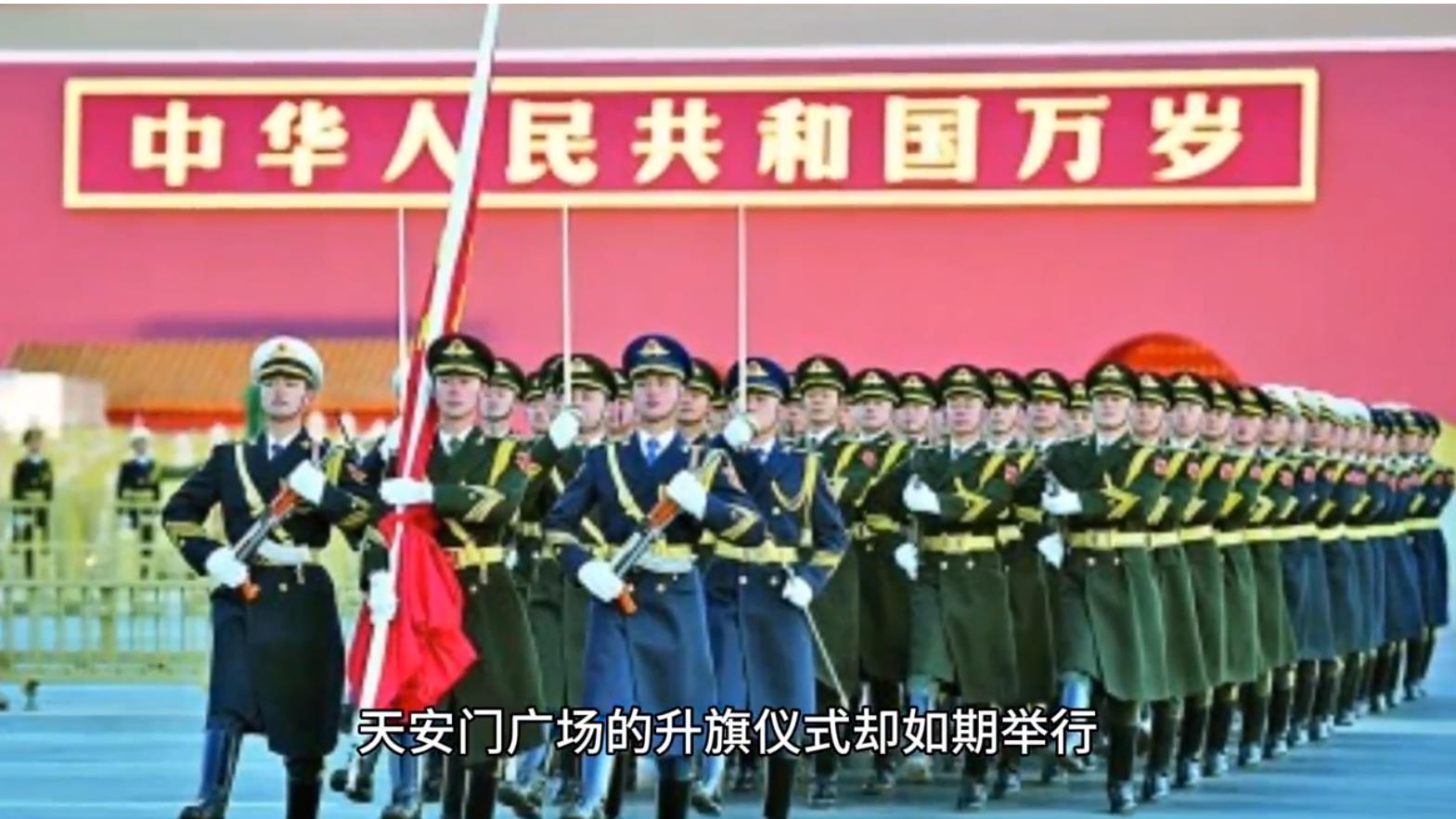 狂風暴雨,國旗依然按時升起!中國憑什么強大偉大更大?!——就憑這個!中國人民的鋼鐵意志!