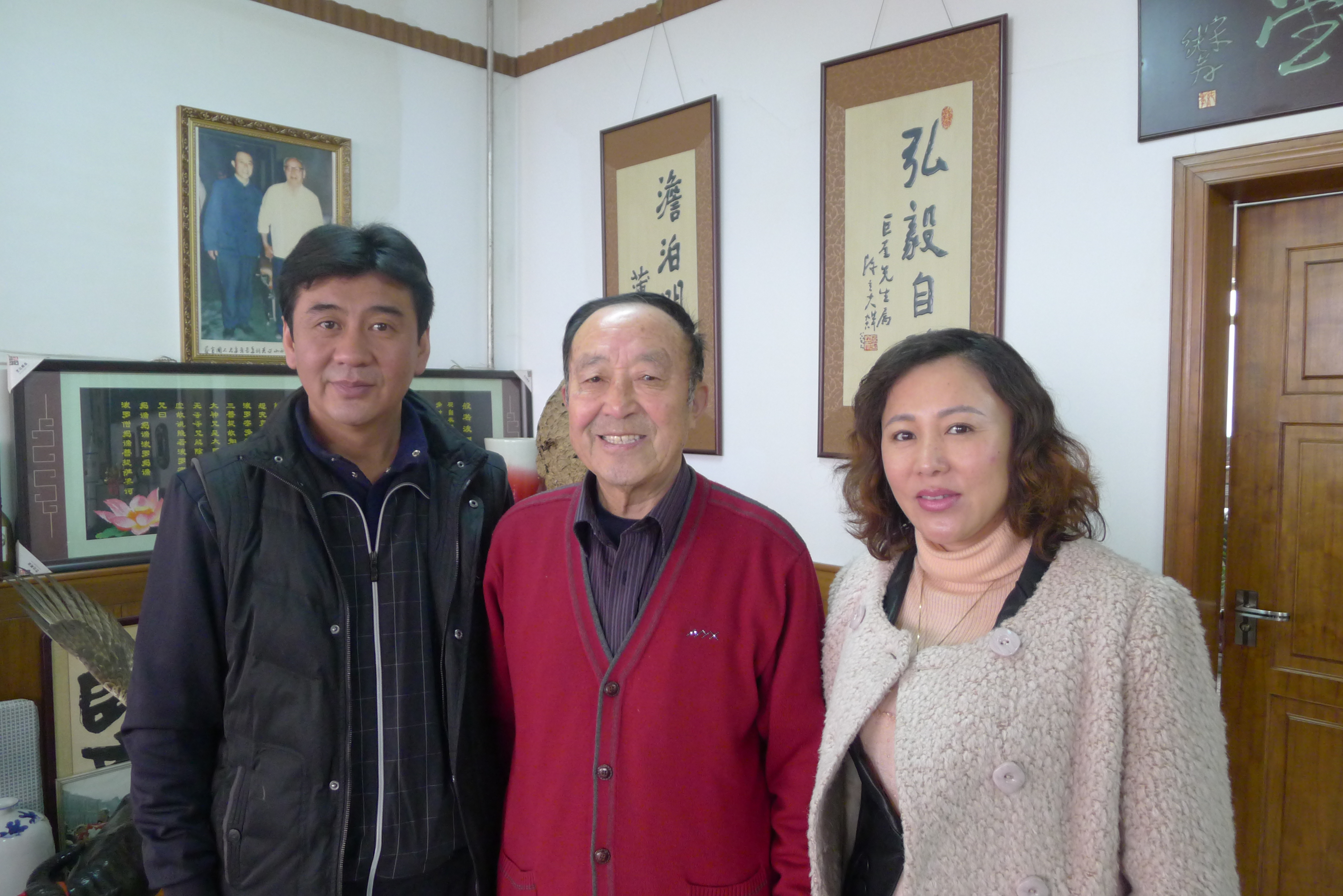 網(wǎng)上查出岔氣簡便易行治療方法,試了幾招,并不見效。無奈,只得湊合著睡吧。朦朧之中,又被疼醒,索性起來。在咱們網(wǎng)上查到《313.感悟中華文明的博大精深——傳統(tǒng)優(yōu)秀文化的精髓是中華醫(yī)藥寶庫》這篇文章,看到了楊巨奎先生的照片。那是2012年3月2日,二建掌門人專程拜訪老人家時(shí),引見人王正祥拍攝的。
