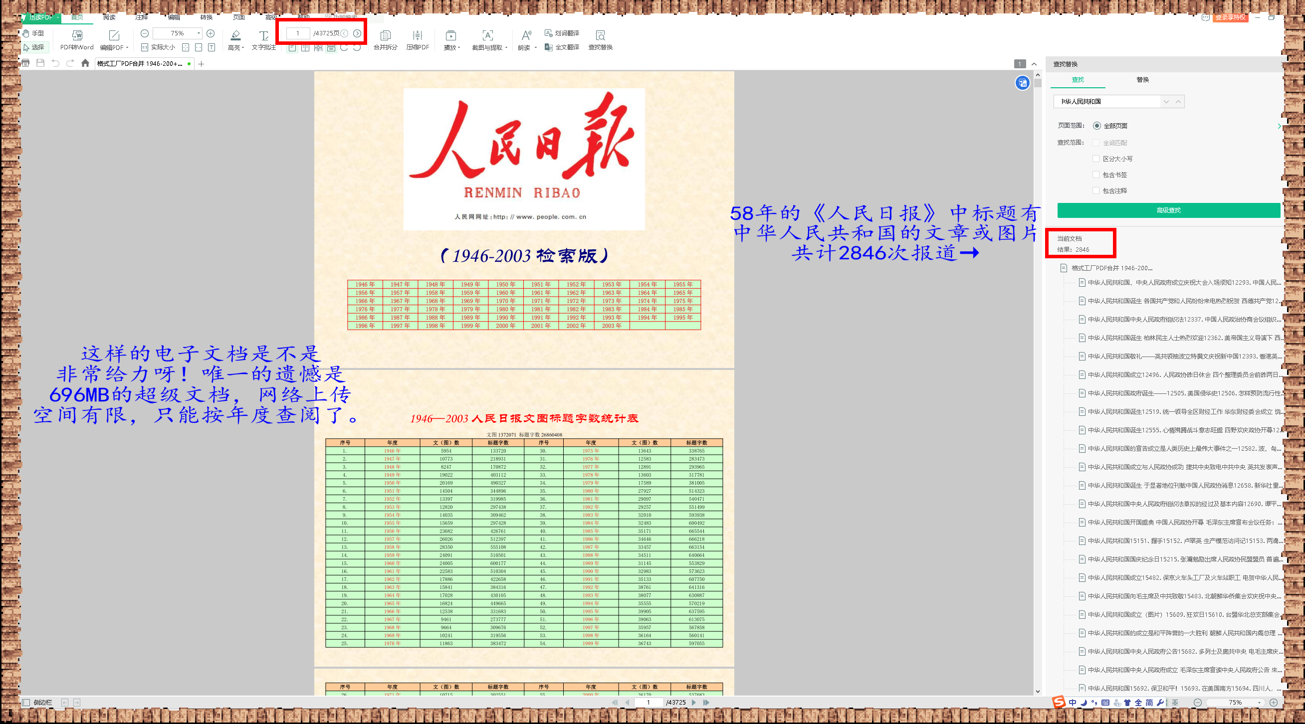 得益于編輯《人民日報》1946-2003檢索版的靈感,今天開始把2009年至今《我的日記》重新編輯匯總為一個PDF文檔,這樣查閱過去十五年的大事小情,那就更加方便和快捷,好啊!