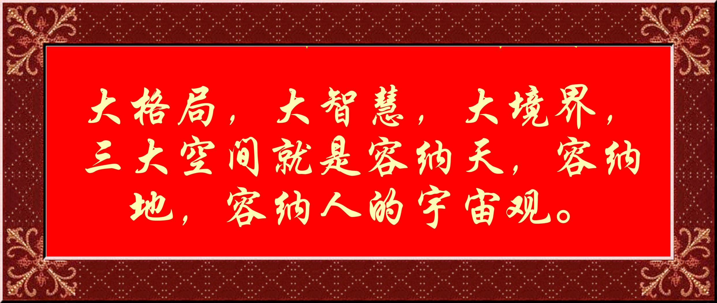 大格局,大智慧,大境界,三大空間就是容納天,容納地,容納人的宇宙觀。人類社會發(fā)展,從愚魅到理性,上萬年發(fā)展到今天,可謂是登峰造極的神話,前無古人的奇跡,先知先覺的超越,預(yù)見未來的圣賢!