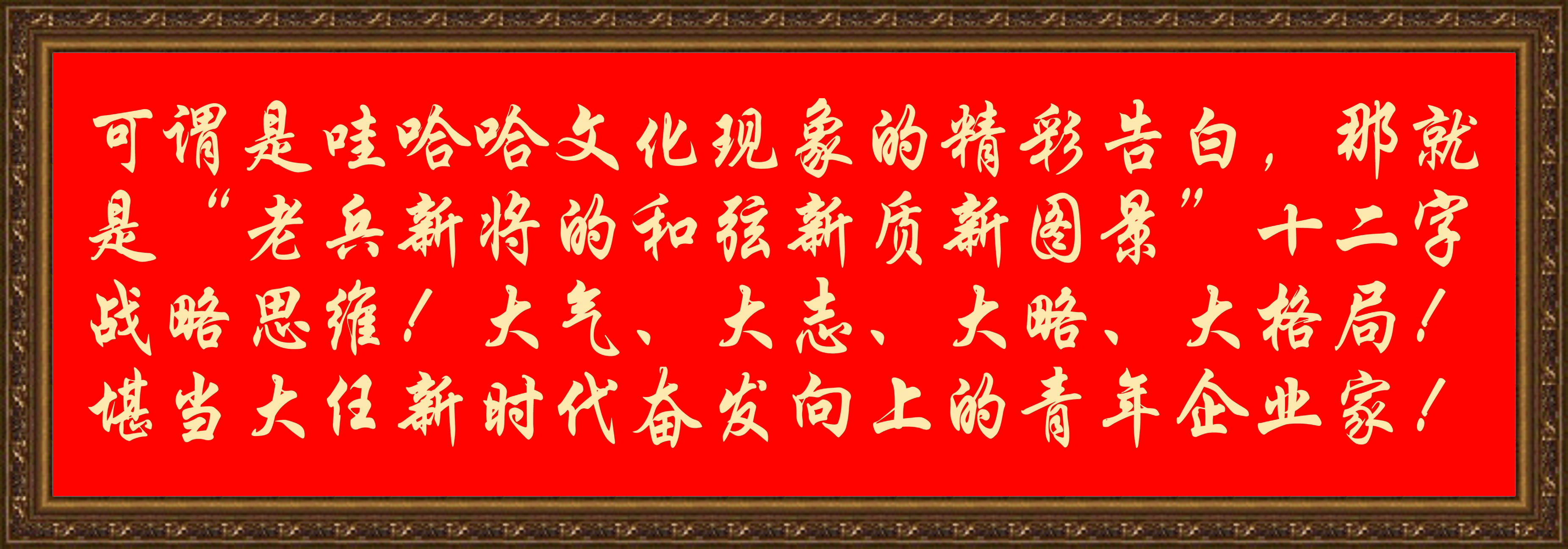 看了這篇報(bào)道,深感娃哈哈新掌門人承受的內(nèi)外壓力和超越自我的使命擔(dān)當(dāng),而她繼任首次公開亮相的發(fā)言,可謂是娃哈哈文化現(xiàn)象的精彩告白,那就是“老兵新將的和弦新質(zhì)新圖景”十二字戰(zhàn)略思維!大氣、大志、大略、大魄力、大格局!堪當(dāng)大任新時(shí)代奮發(fā)向上的青年企業(yè)家!