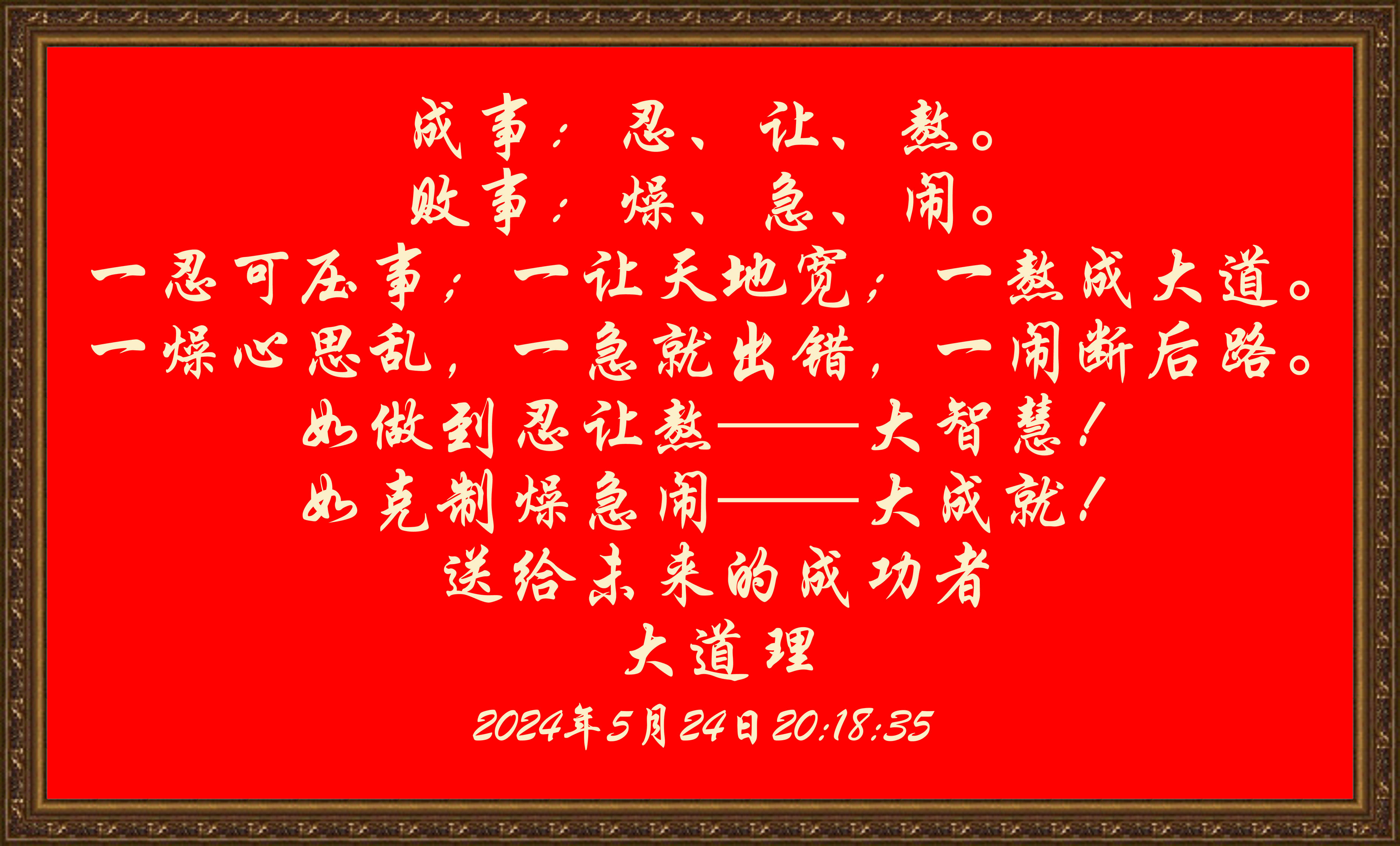 一忍可壓事;一讓天地寬;一熬成大道。