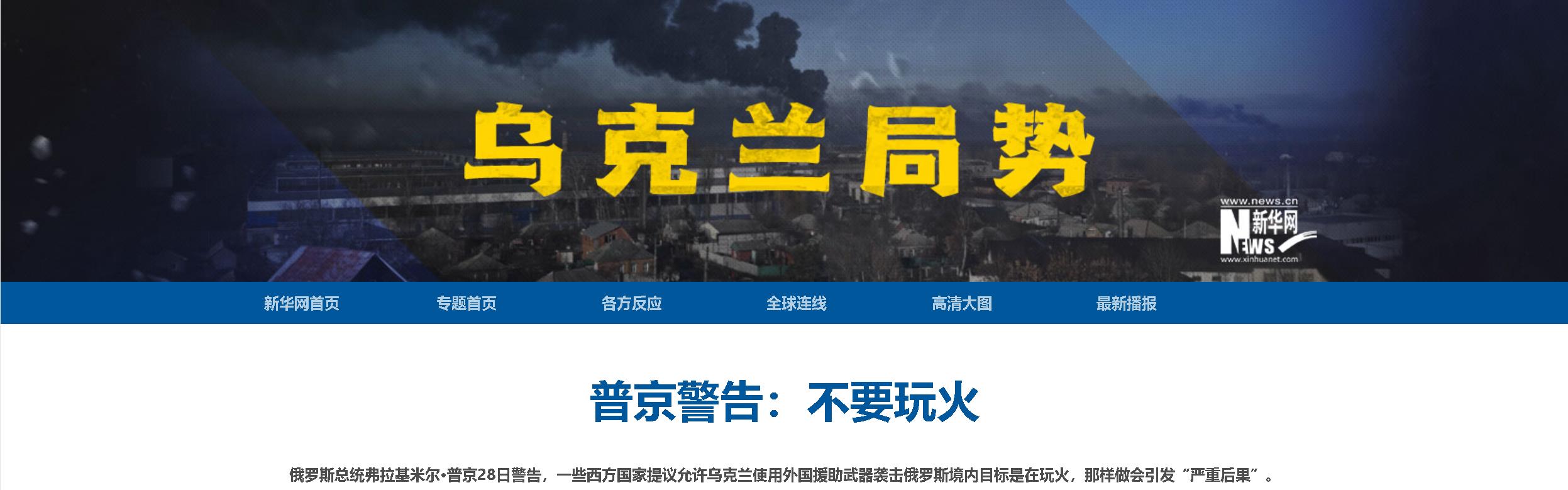 新華社北京5月29日電 俄羅斯總統弗拉基米爾·普京28日警告,一些西方國家提議允許烏克蘭使用外國援助武器襲擊俄羅斯境內目標是在玩火,那樣做會引發“嚴重后果”。