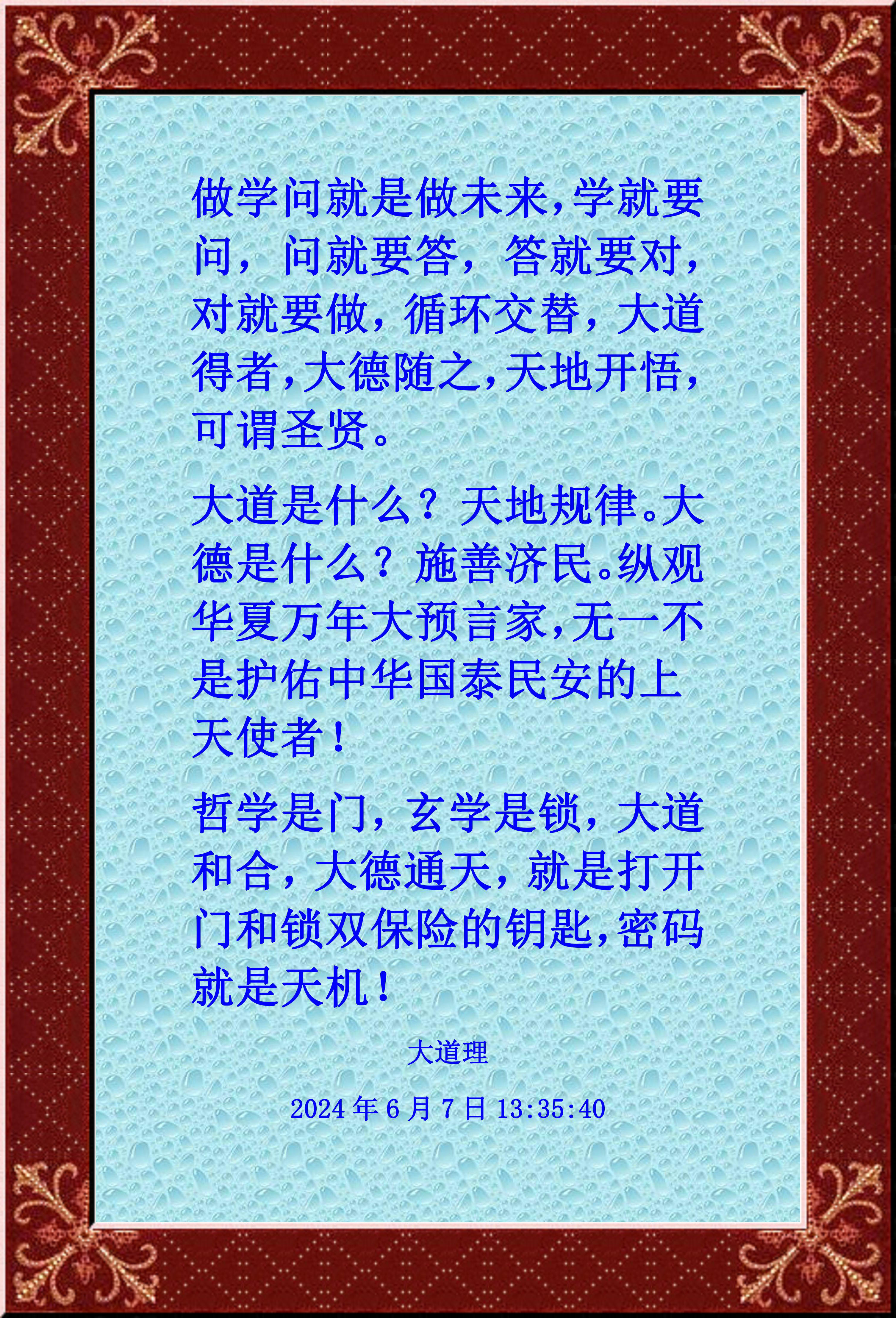 哲學是門,玄學是鎖,大道和合,大德通天,就是打開門和鎖雙保險的鑰匙,密碼就是天機!