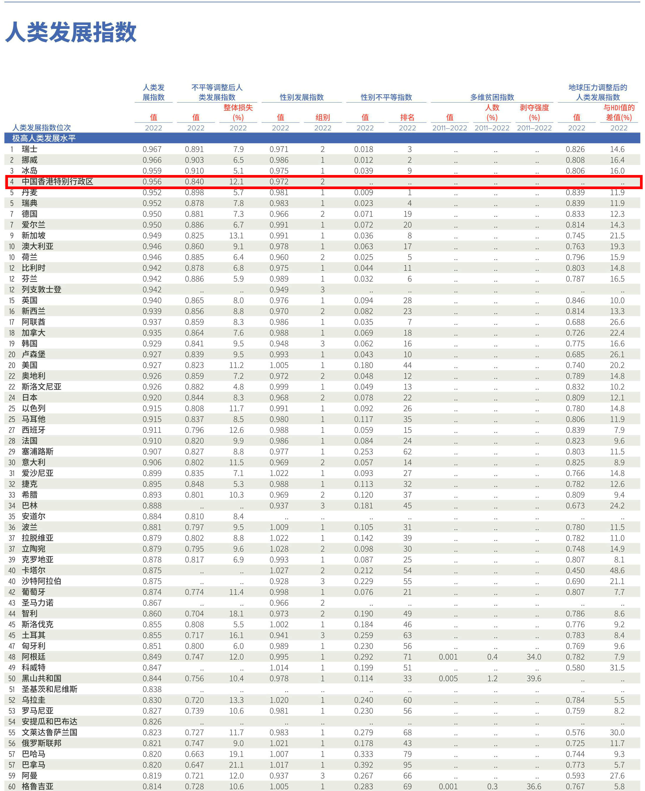 等級 國家或地區 人的發展指數 與2021年相比的變化