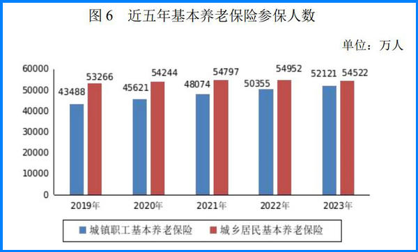 年末全國參加城鄉(xiāng)居民基本養(yǎng)老保險人數(shù)54522萬人, 其中實際領取待遇人數(shù)17268萬人。