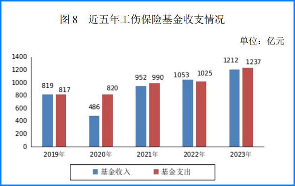 全年工傷保險基金收入 1212 億元,基金支出 1237 億元,年末工傷保險基金累計結余 1415 億元(含儲備金 119 億元)。